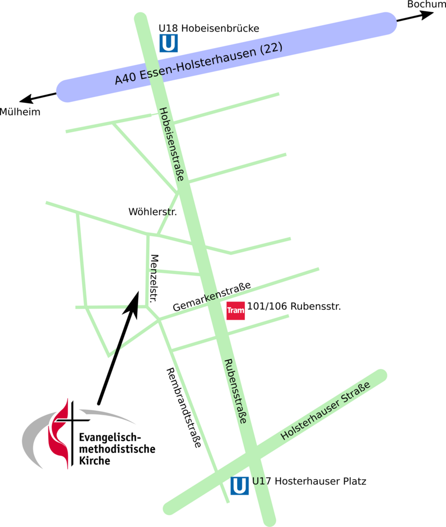 - Autobahn: A40, Abfahrt 22 Essen-Holsterhausen
